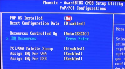 PnP/PCI设备配置界面